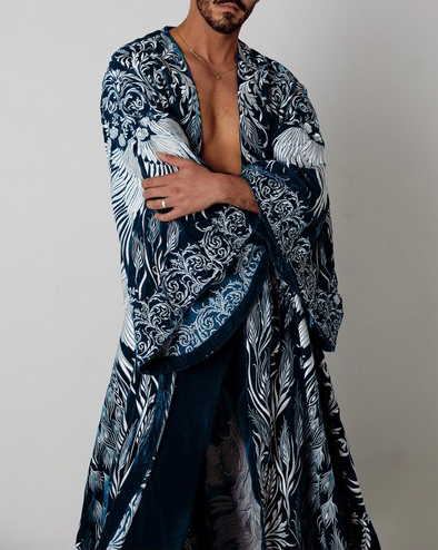Men's Casual Vintage Printed Robe Cardigan 9fc2