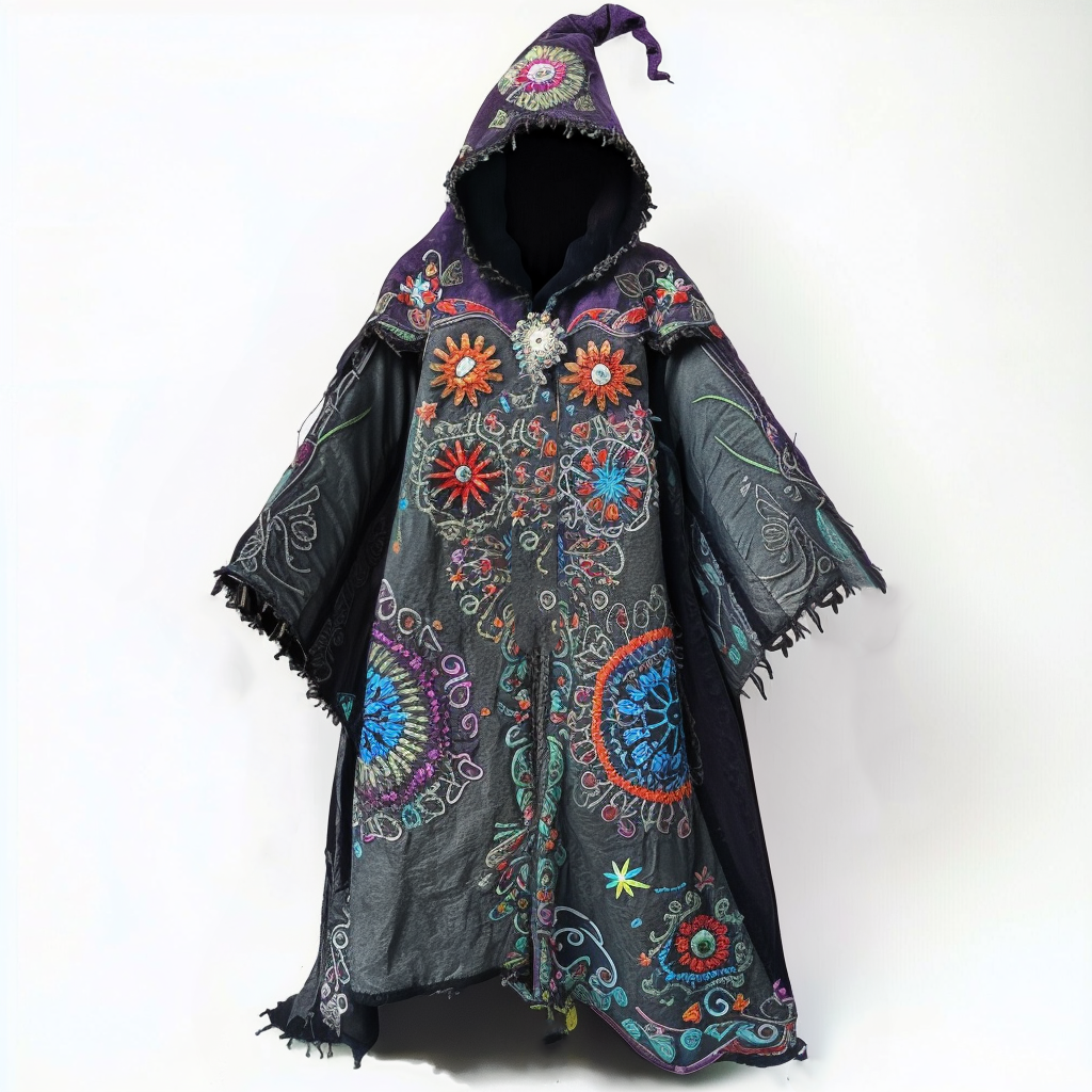 Ethnic mandala embroidered hooded robe e661