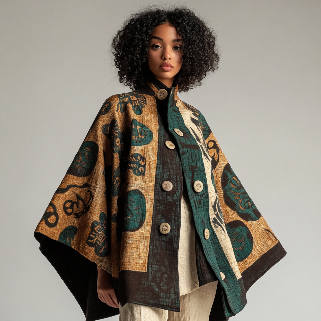 Medieval art big print autumn coat cape