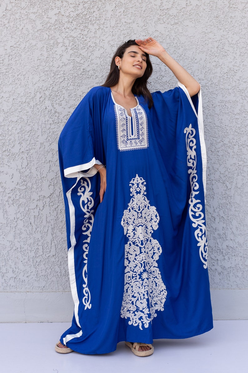 **Note : The kaftan in the video is a different color of the exact same kaftan and is there to display the cut, fit, and flow of the kaftan which is the exact same as the listing.**