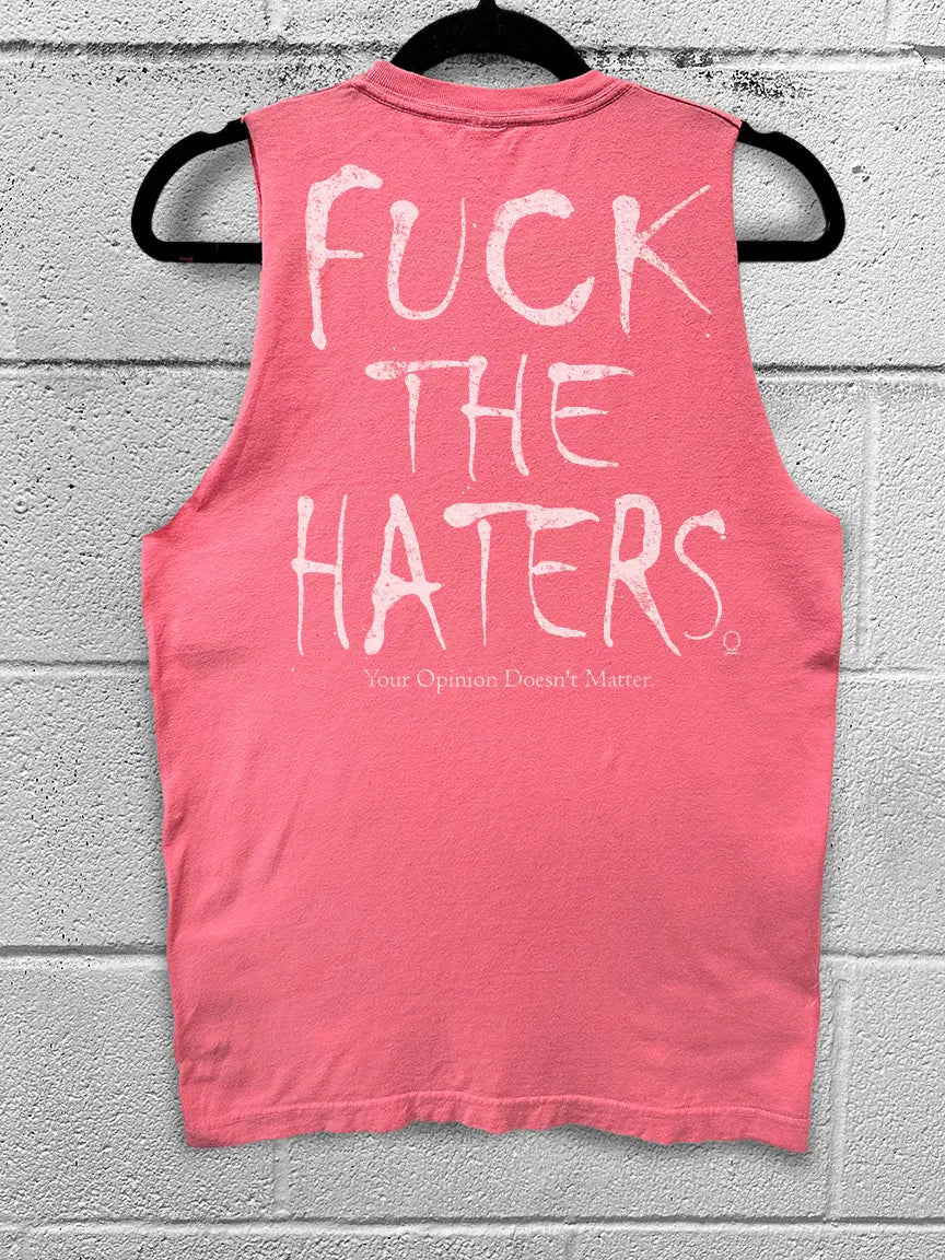 VINTAGE FUCK THE HATERS TANK TOP *PINK* 1bdf